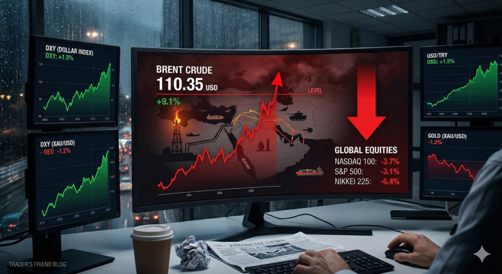 Ham petrolün 2022 ortasından bu yana ilk kez 110 dolar seviyesini aşmasıyla birlikte küresel hisse piyasalarında sert satış dalgaları izleniyor. Orta Doğu’da artan jeopolitik riskler, üretim kesintileri ve tedarik zincirlerindeki aksamalar piyasaların tansiyonunu yükseltmiş durumda.